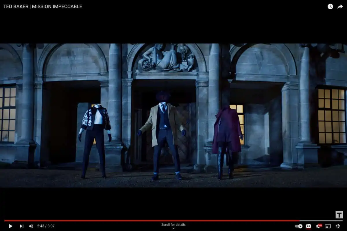 One early example of shoppable video is Ted Baker’s ‘Mission Impeccable’ film, which was created in 2016.