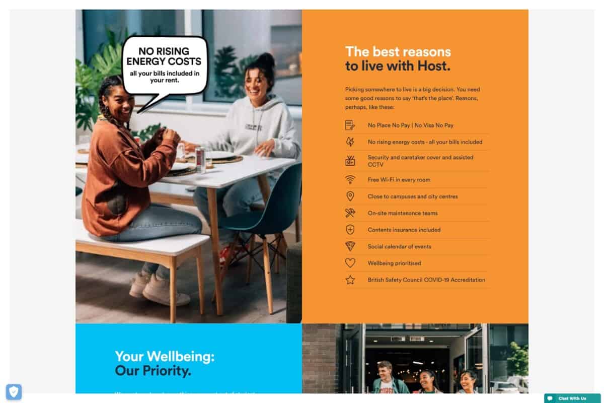 One of the key goals for the site was to engage with students and encourage them to use Host for their accommodation. However, Host also has other key audience groups that they need to communicate with through their digital platforms, such as universities, parents and investors.